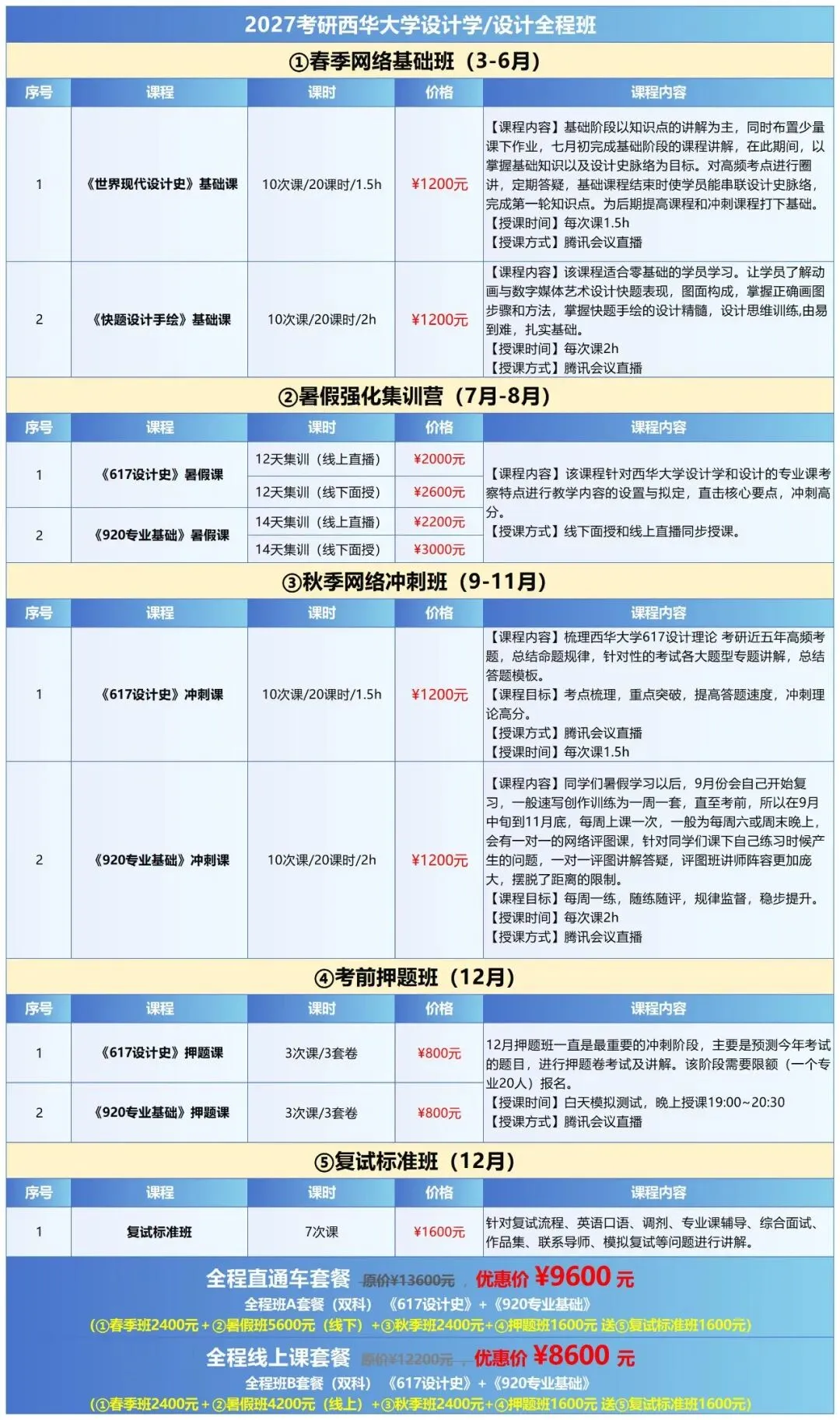 ✅全程直通车(线下):9600 元 = 春季 + 暑假线下 + 秋季 + 押题 + 复试,适合想沉浸式学习的宝子
