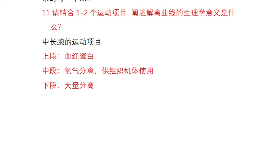 氧解离曲线的左下段:相当于PO₂在5.3~2.0kPa(40-15mmHg)之间,是氧解离曲线最陡的 部分,表明在此范围内P 如稍有降低,Hb氧饱和度就会显著下降。如人体剧烈运动时,组织 PO₂可降至2.0kPa(15mmHg)甚至更低,Hb氧饱和度可降至更低水平,即HbO₂, 进一步解离出 0₂供组织细胞利用,故该段曲线的生理意义为:当组织细胞需氧量增加时,血液可释放出更多0₂。
