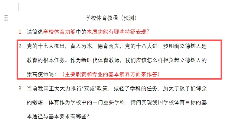 《学校体育教程》部分,考题侧重于结合当下有关于学校体育教学的热点进行考察,但是也是立足于书本的基础知识进行扩展的,并且也在最后的押题课中压到3道,考生直呼“老师,你猜学体真准”!