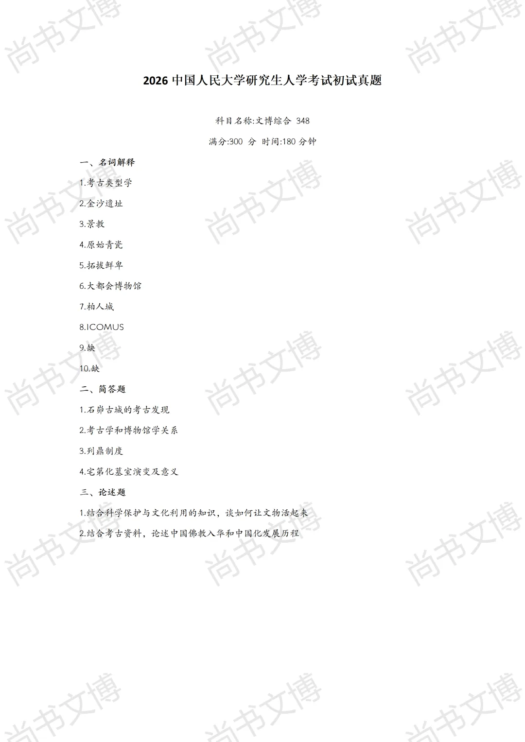 26中国人民大学博物馆考研真题