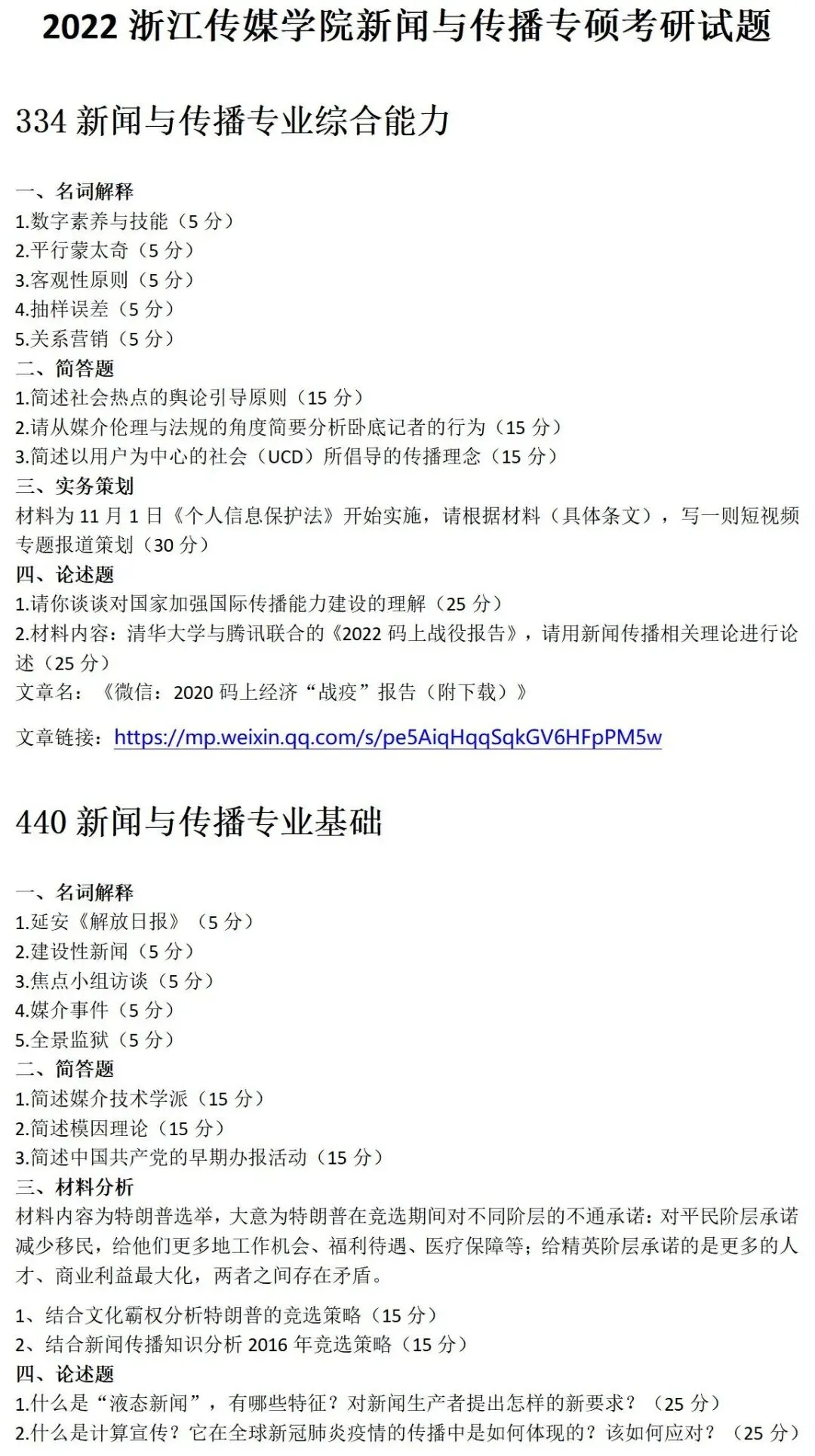 浙江传媒大学新闻与传播考研真题2022