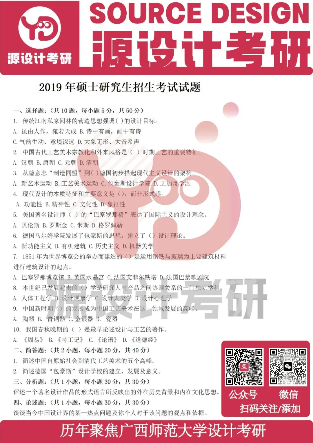>广西师范大学设计考研历年真题