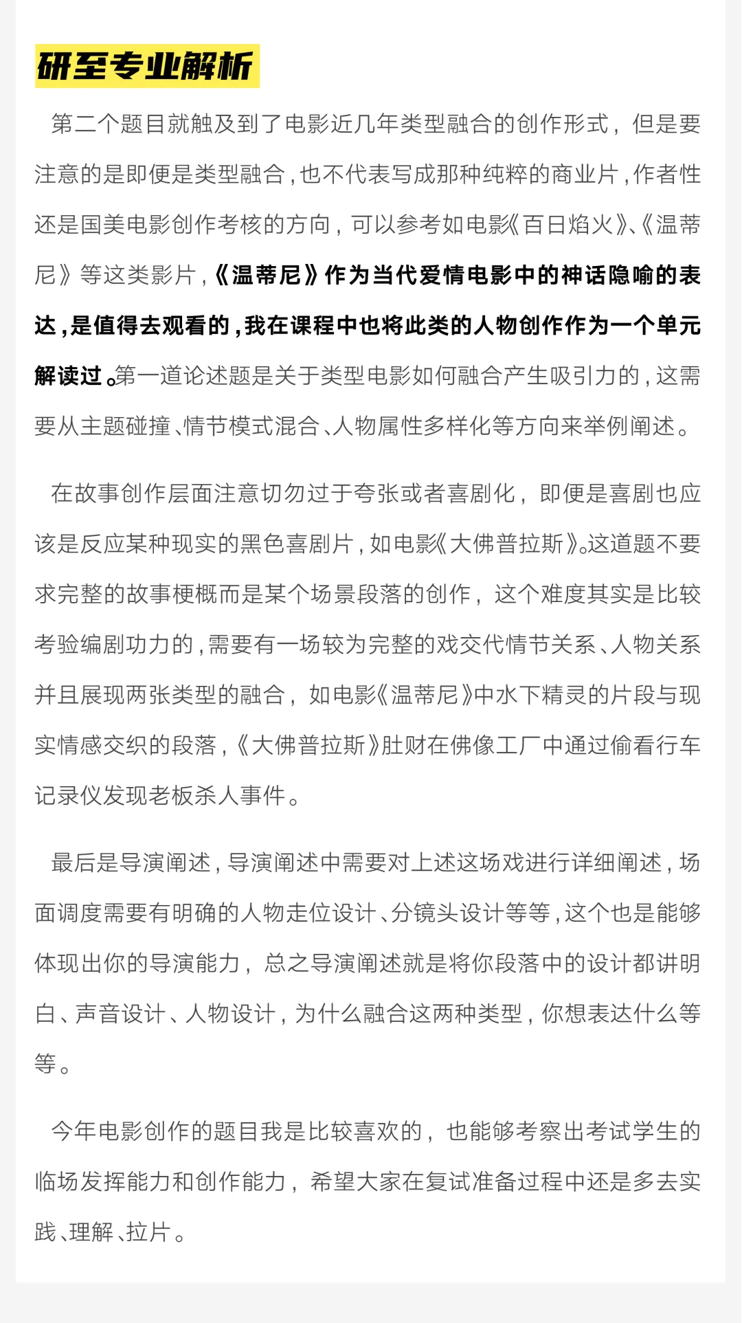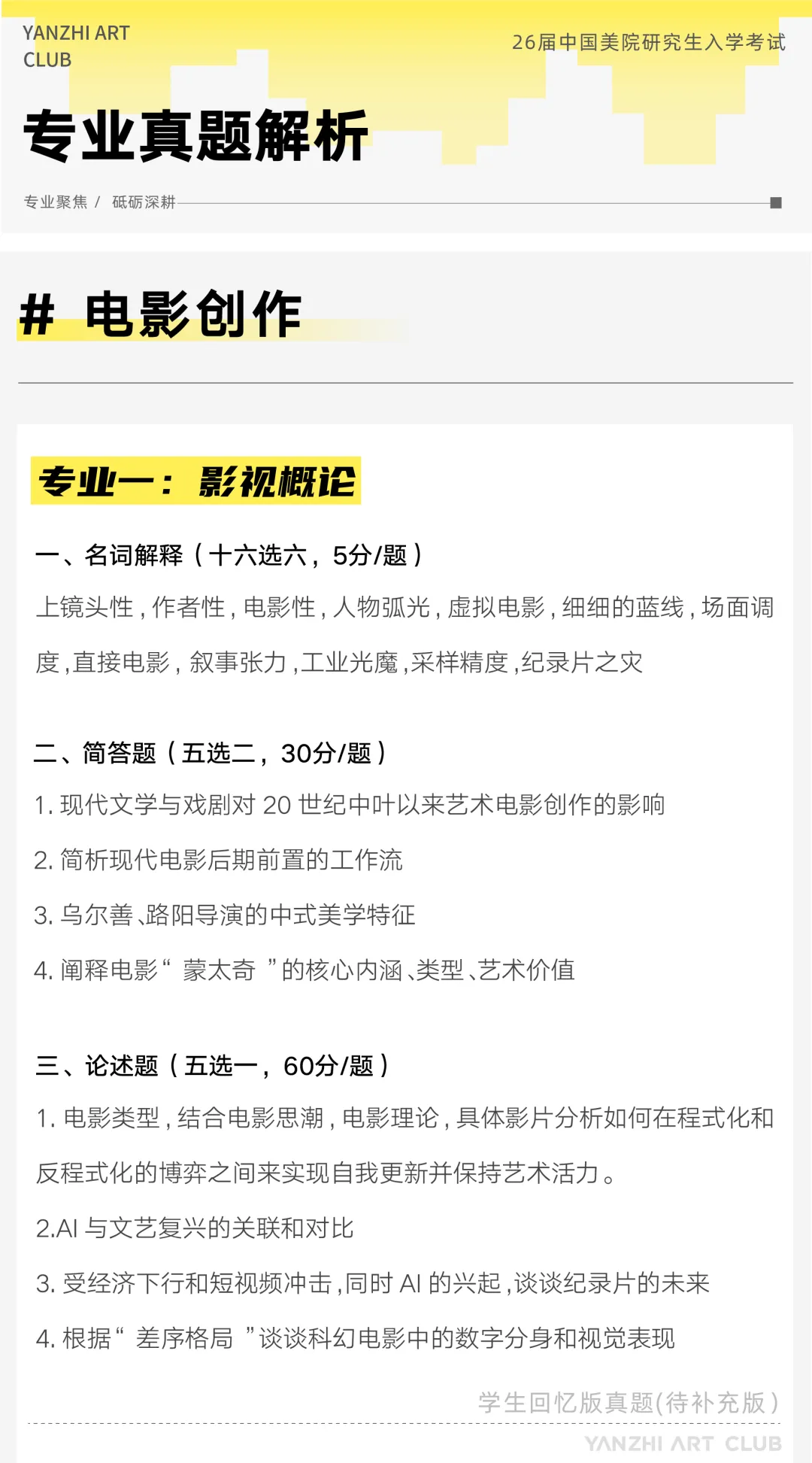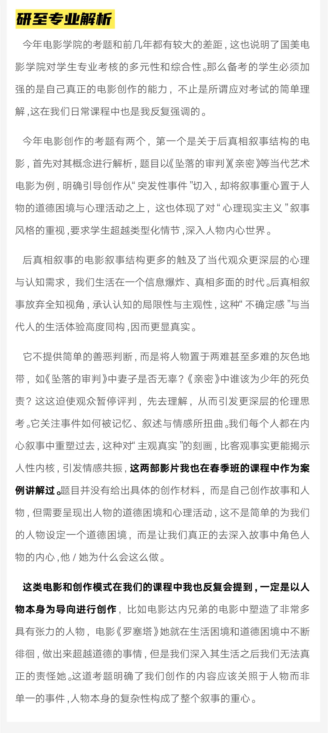 2026考研真题|研至国美考研解析·电影学院——电影创作