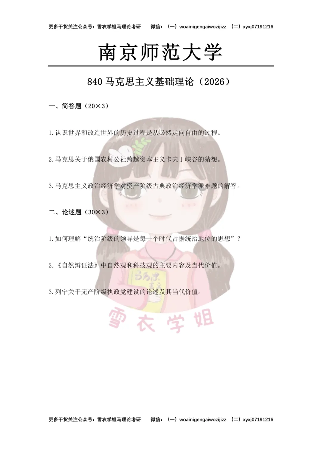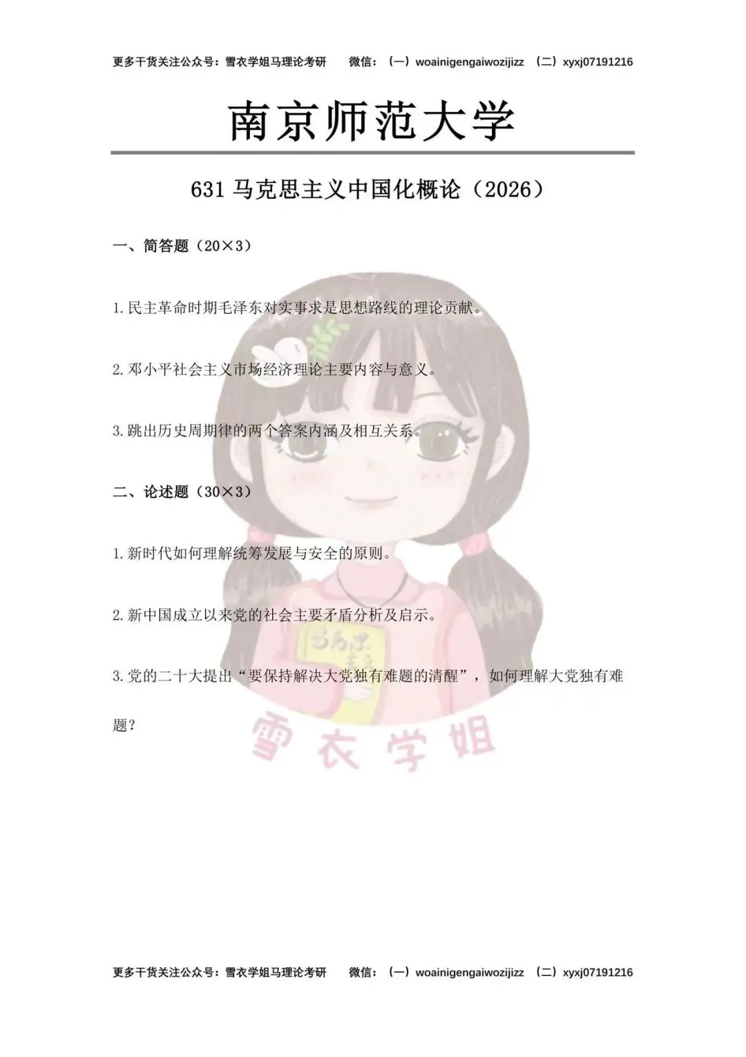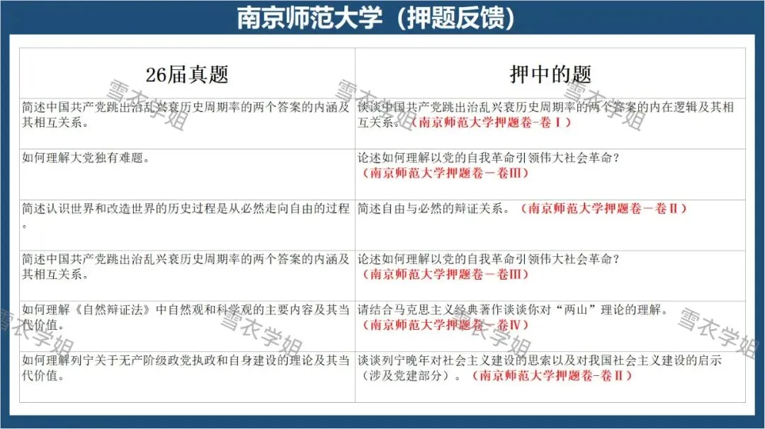该栏目初心是为27届备考马理论的学弟学妹们提前解锁各校最新真题、找准适配自己的目标院校,也为26届学长学姐的复试之路点亮指引方向的明灯。我们会精选各大高校最新真题,拆解为真题预览、押中的题、内容分析与答题思路、备考策略四大板块,全方位拆解真题要点,让大家的备考之路少走弯路,思考更有深度,冲刺更有底气!