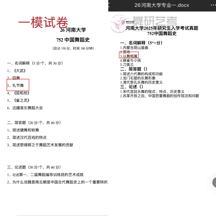 今年河南大学的题延续了重视基础知识的风格,专业一古代舞蹈史的考察,大部分依旧是围绕中国古代舞蹈史和近现代当代舞蹈史展开。