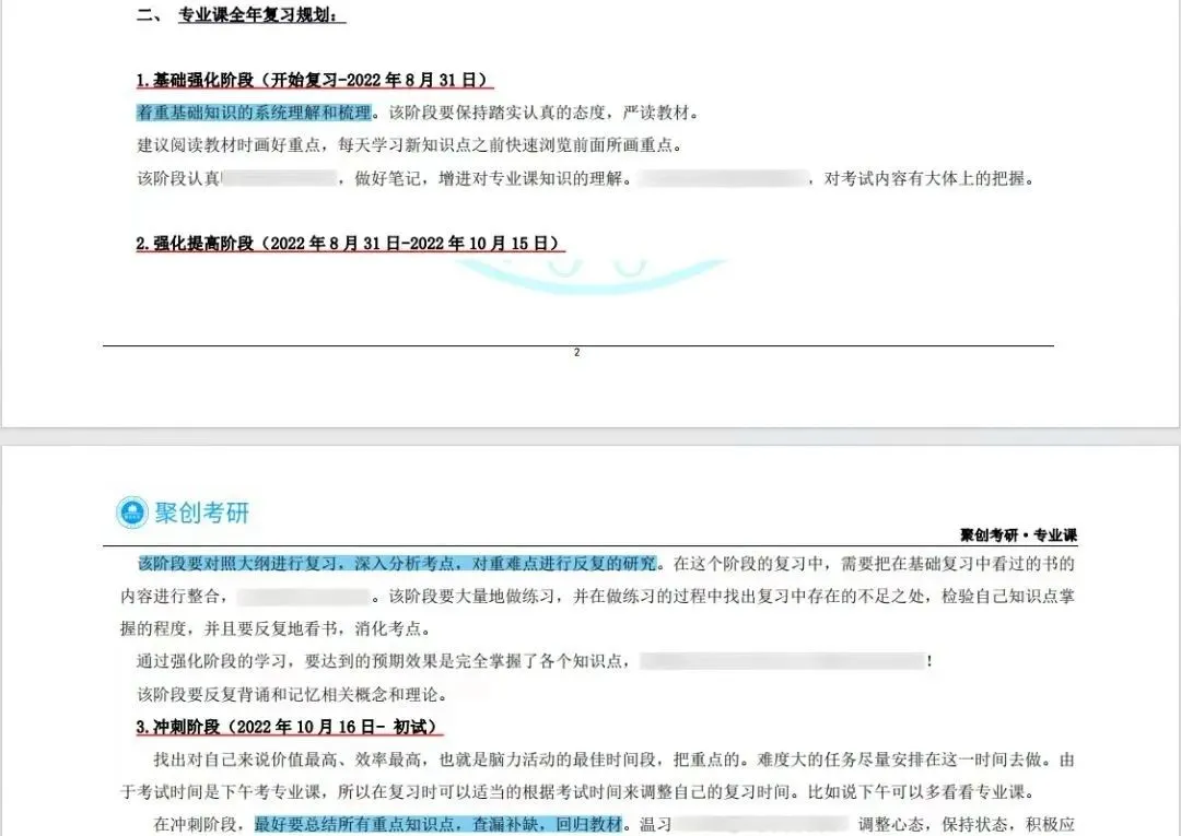⭕聚创考研专业课一对一辅导计划制定全程专业课精细化复习规划,贴心地为你准备专业课全年复习规划及各个阶段具体学习计划详情表。