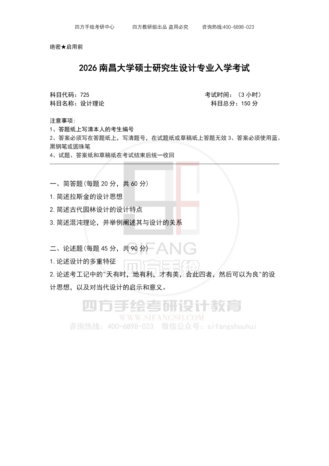 及时整理发布考研真题(真题学校是不公布的)就是为了给备考的同学,提供一些方向上的指导,作为从业十年的设计考研教培人来说,深知其重要性。在信息高速发展的当下,仅自己的一点绵薄之力,也不枉当初自己的那份执着之心。考研真题不存在什么版权一说,各位同学和同仁可以自取所需。