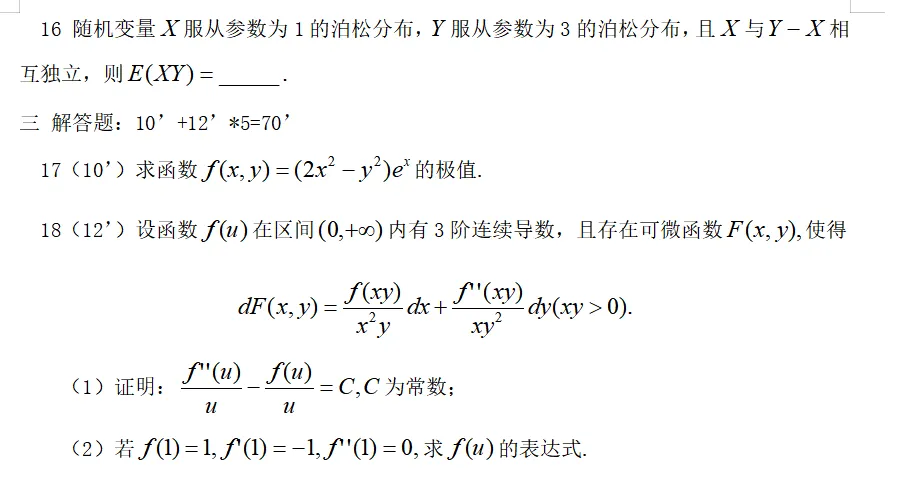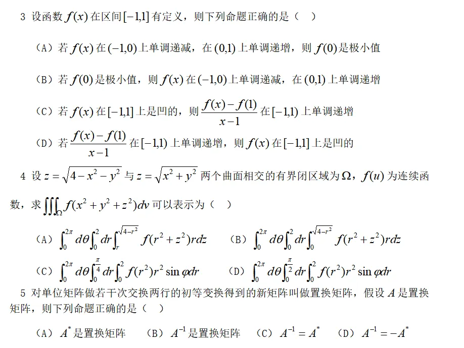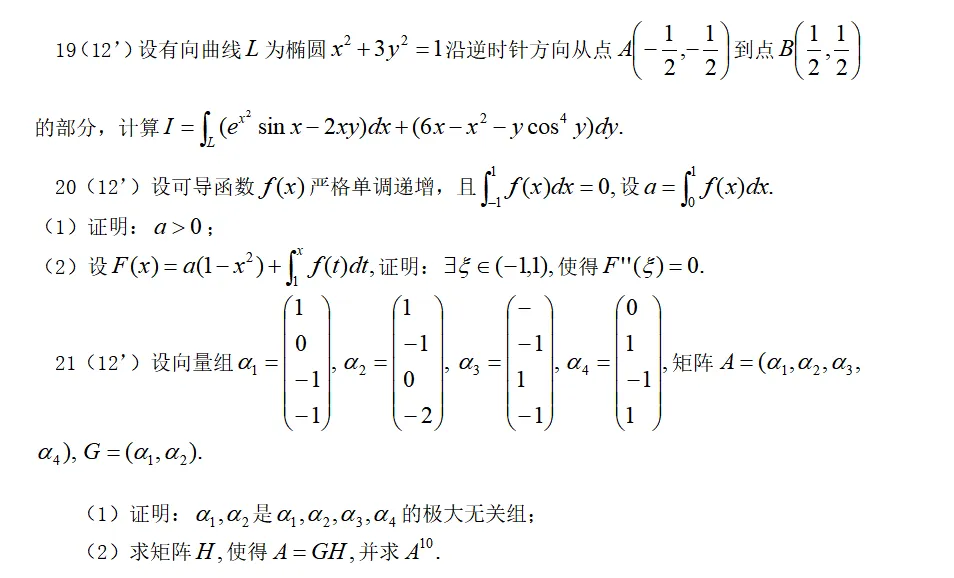 2026年考研数学真题数学一