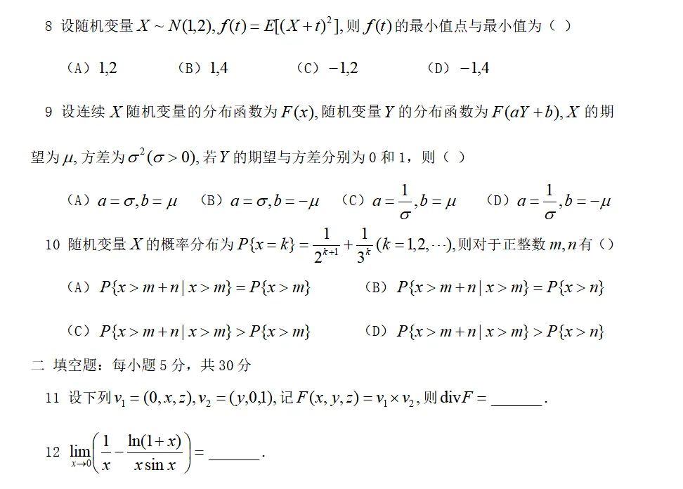26年考研数学真题(数三)