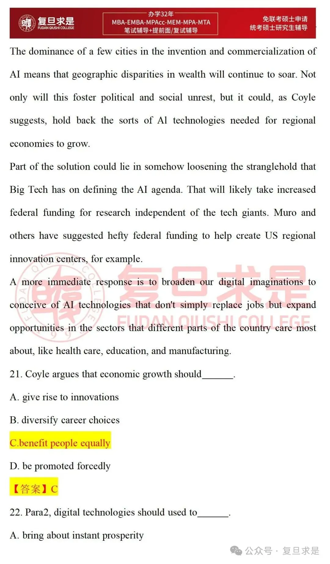 【重磅发布】2025管理类专硕考研英语二真题及参考答案