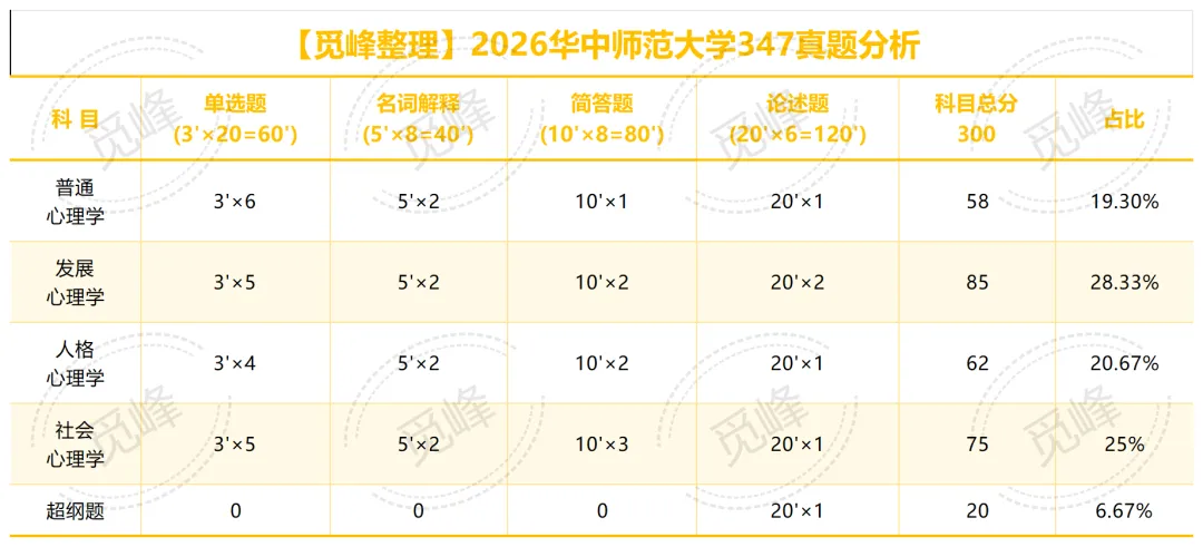 (4)注意:人格心理学在华师考题中承担了“选拔性功能”。由于包含大量主观综合和超纲题,要求考生具备更广的阅读量和理论整合能力。