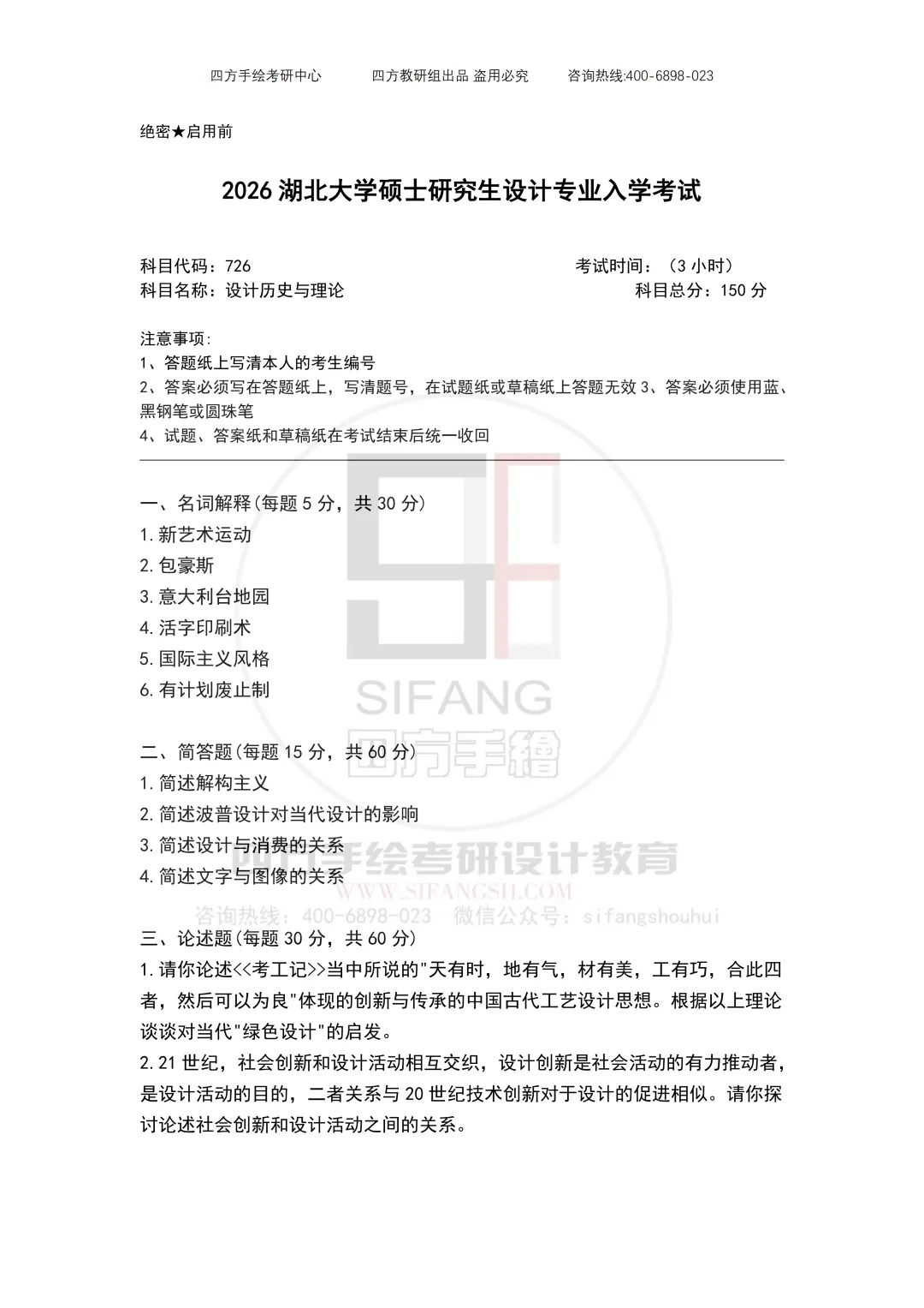 当前位置:首页>考研真题>湖北大学视觉传达考研2026级真题!理论考题难度适中,基本都为书中的内容重现,无衍生题目