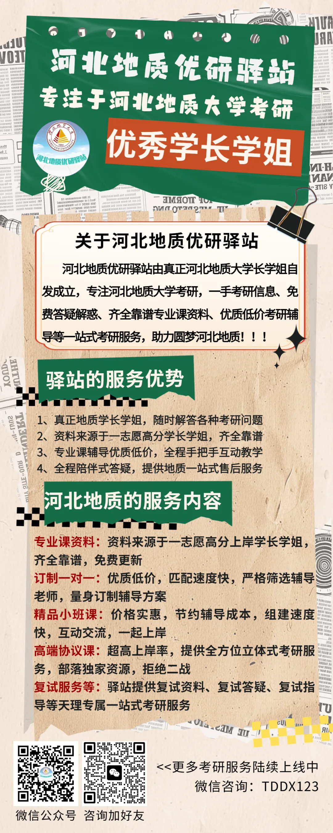 你宝贵的考研资料给各位学弟学妹指明备考方向的同时,河北地质优研驿站也为你准备了红包奖励,请各位学弟学妹们扫下方微信二维码联系我们!!!