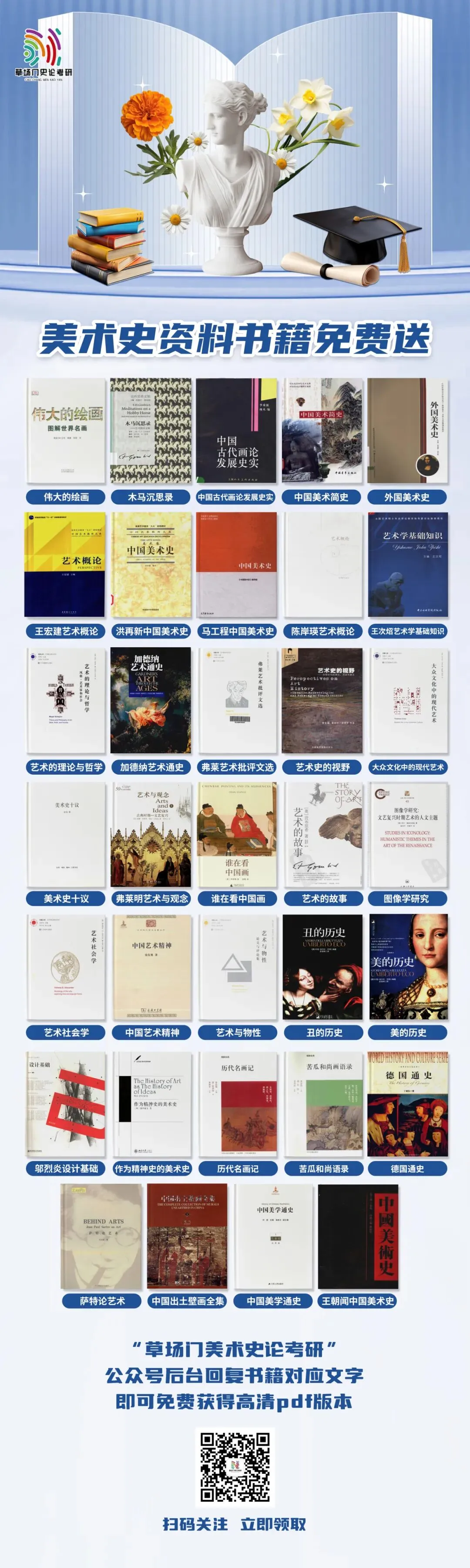 几十本美术史好书与备考资料免费领!扫码关注,输入所需书籍对应名称立即领取!(请务必正确输入书籍下方对应名称,否则无法领取)