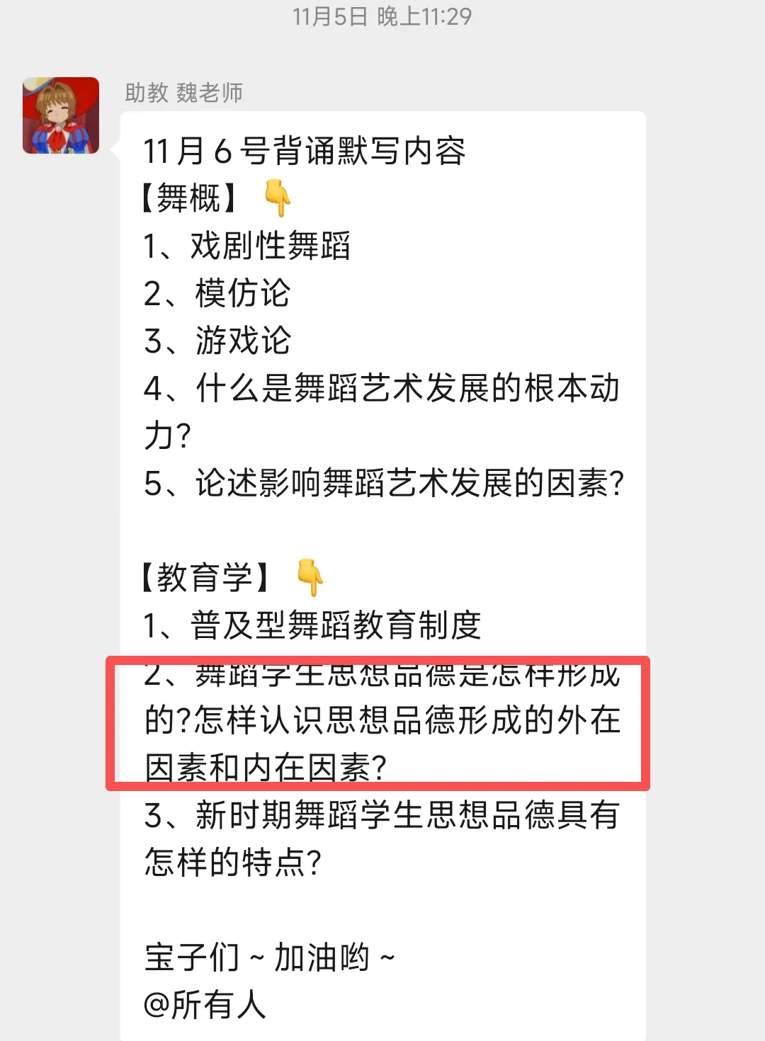 1、基础考点还是锚定课后思考题,今年出现知识拓展题:近4年真题中,90%的核心考点直接对应教材课后习题与核心知识点,均为课本重点内容,应试性极强。26年出现的“素质教育”相关考点并非孤立,而是呼应“双减”背景下舞蹈教育纳入美育体系的政策导向(如《关于全面加强和改进新时代学校美育工作的意见》),且与“舞蹈教育是一种美育”这类论述题形成逻辑呼应,体现“课本理论+政策落地”的命题思路。