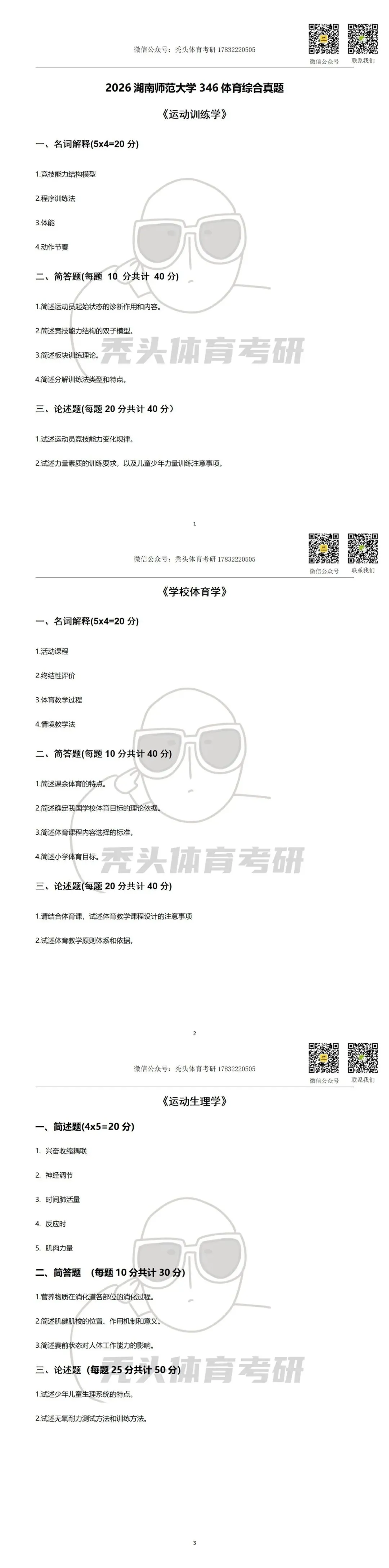>26体育考研真题丨湖南师范大学346体育综合初试真题(2026)