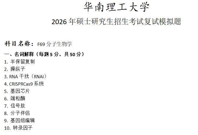 当前位置:首页>考研真题>华南理工大学F69分子生物学考研复试真题模拟