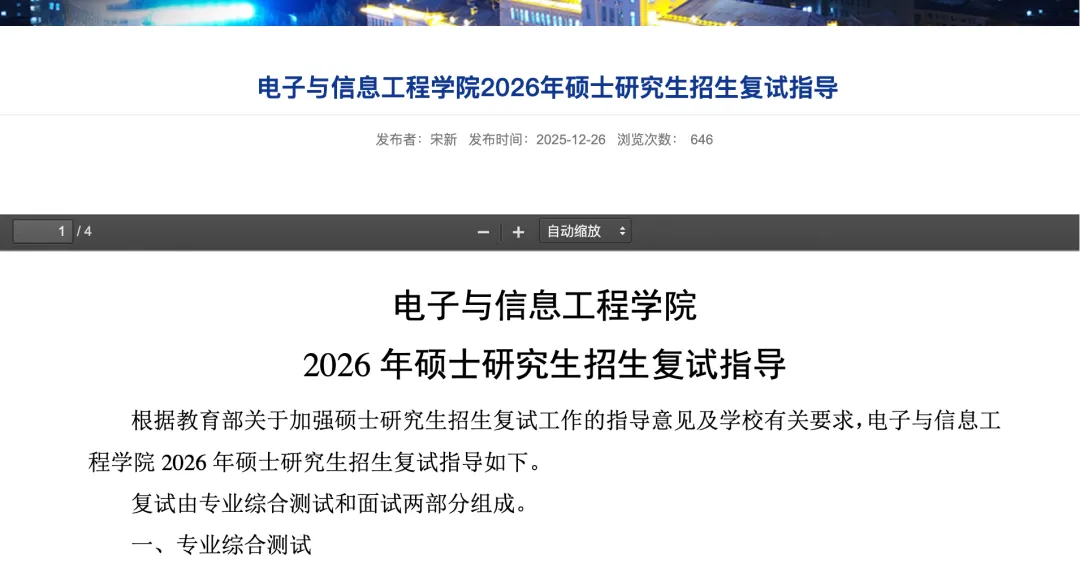 哈尔滨工业大学:电子与信息工程学院在12月底发布了清晰的《复试指导》,包含内容、书目与大纲重点,操作性极强。