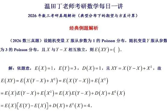 >2026年数三考研真题解析(典型分布下的期望与方差计算)