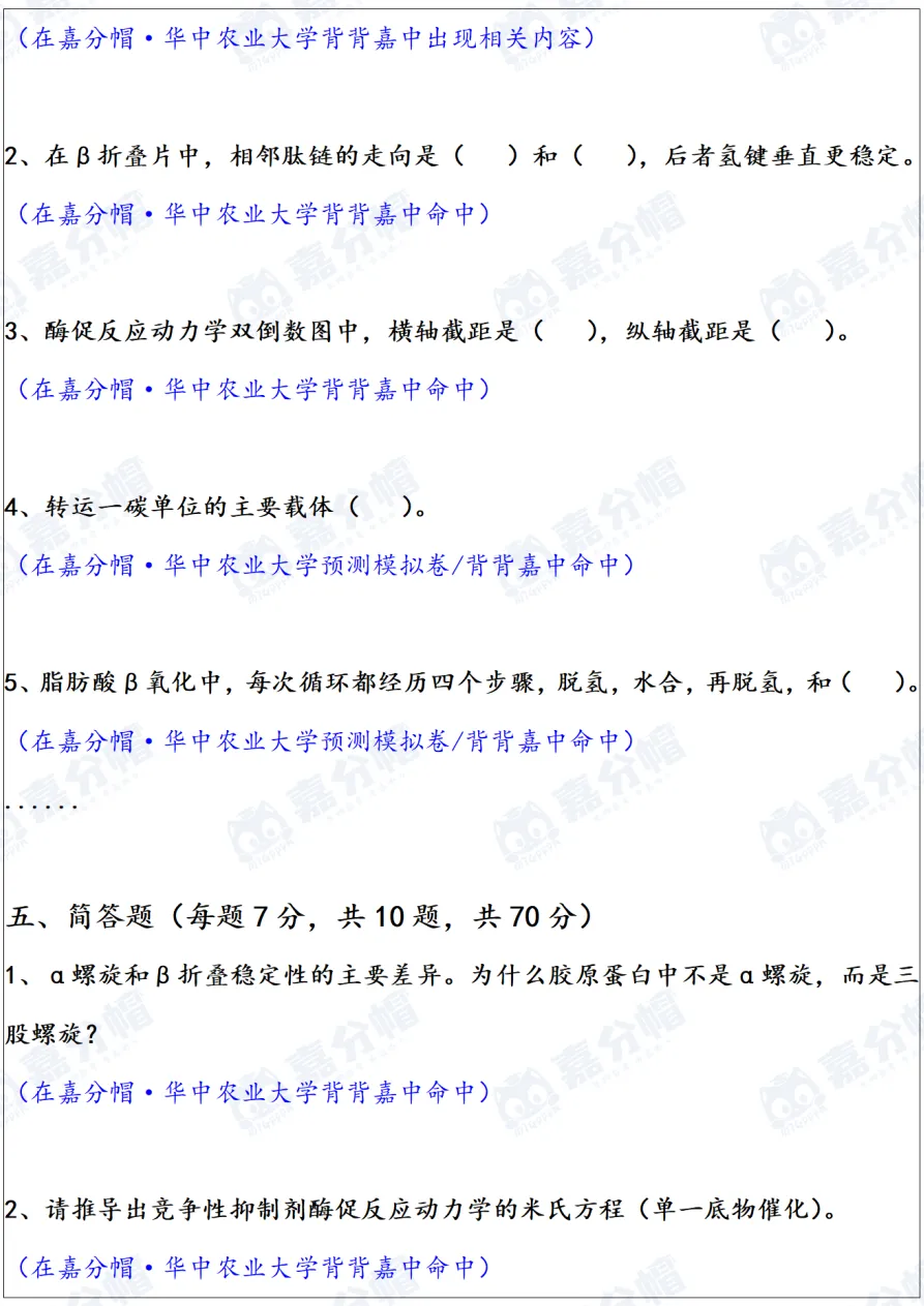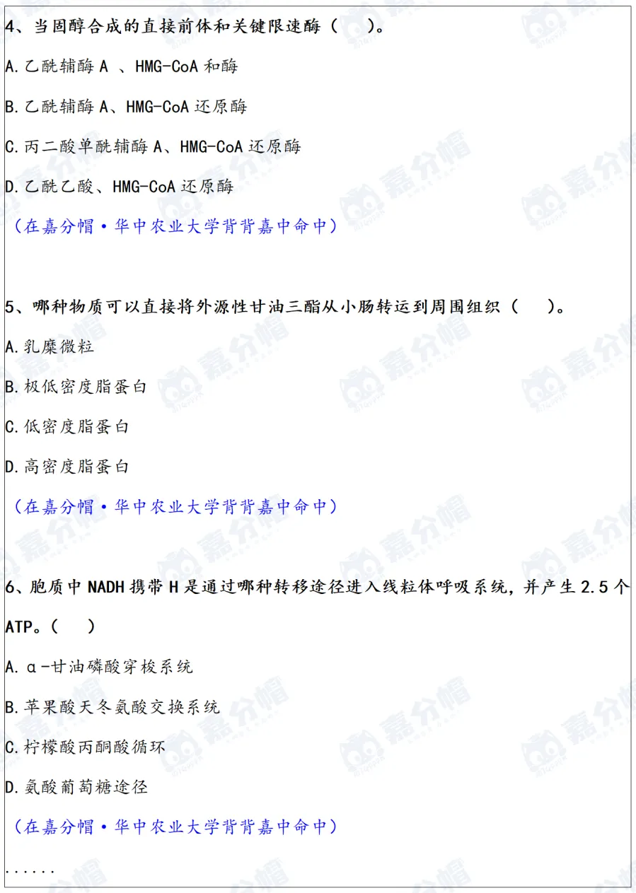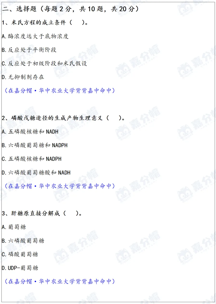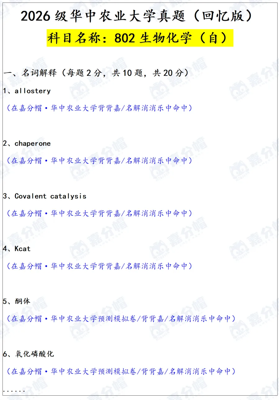 ↑ 华中农业大学 802生化 真题题型解读 ↑