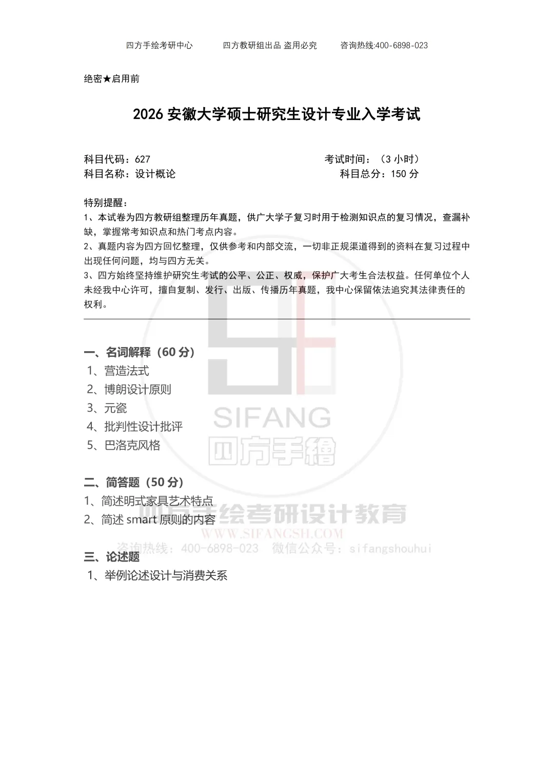 及时整理发布考研真题(真题学校是不公布的)就是为了给备考的同学,提供一些方向上的指导,作为从业十年的设计考研教培人来说,深知其重要性。在信息高速发展的当下,仅自己的一点绵薄之力,也不枉当初自己的那份执着之心。考研真题不存在什么版权一说,各位同学和同仁可以自取所需。