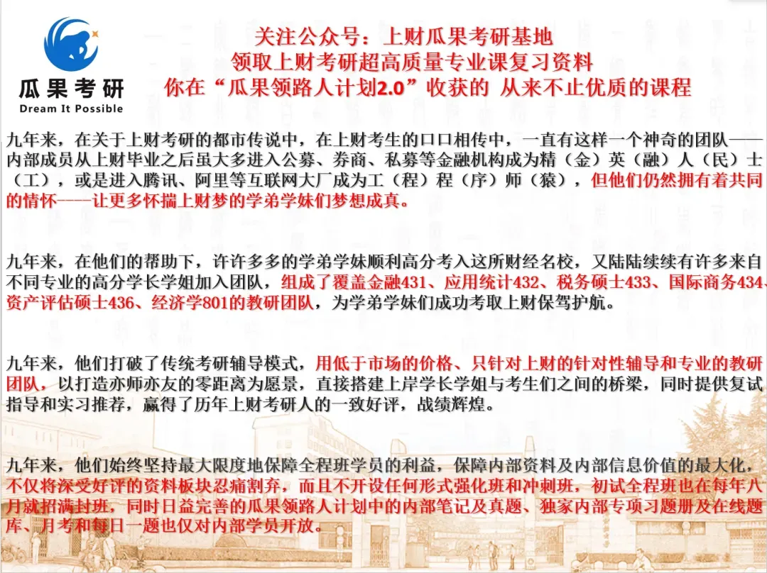 课程详情请淘宝店铺搜索【上财瓜果考研基地】