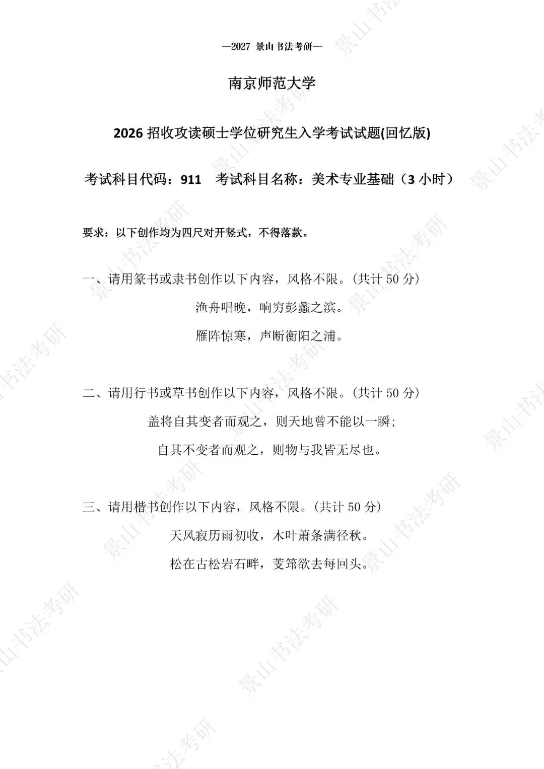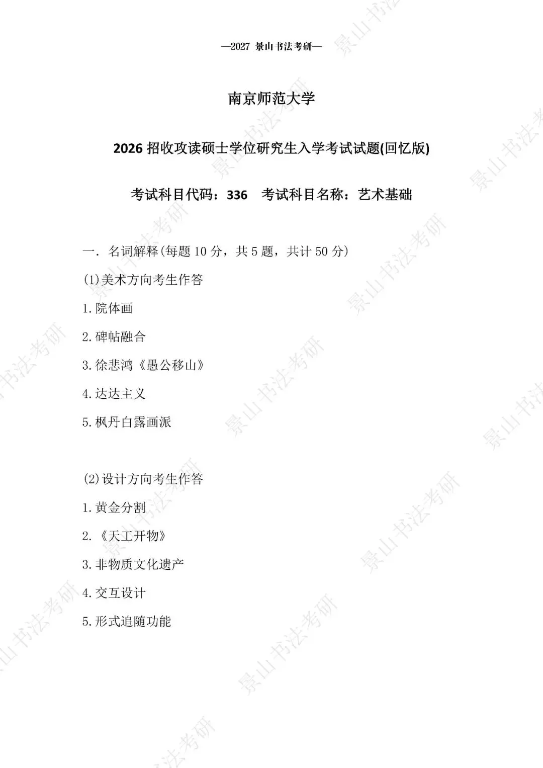 >2026考研真题|南京师范大学 336艺术基础 911 美术专业基础