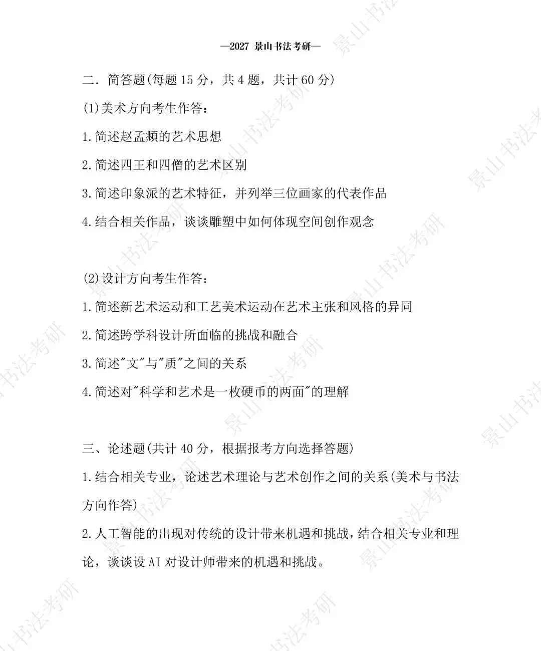 山西师范大学2026书法考研真题(625命题写作、910命题创作)