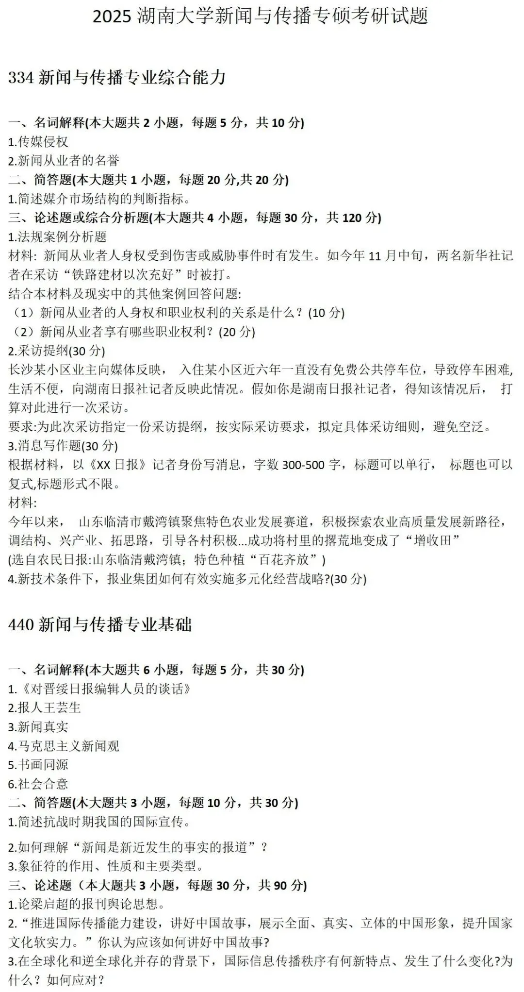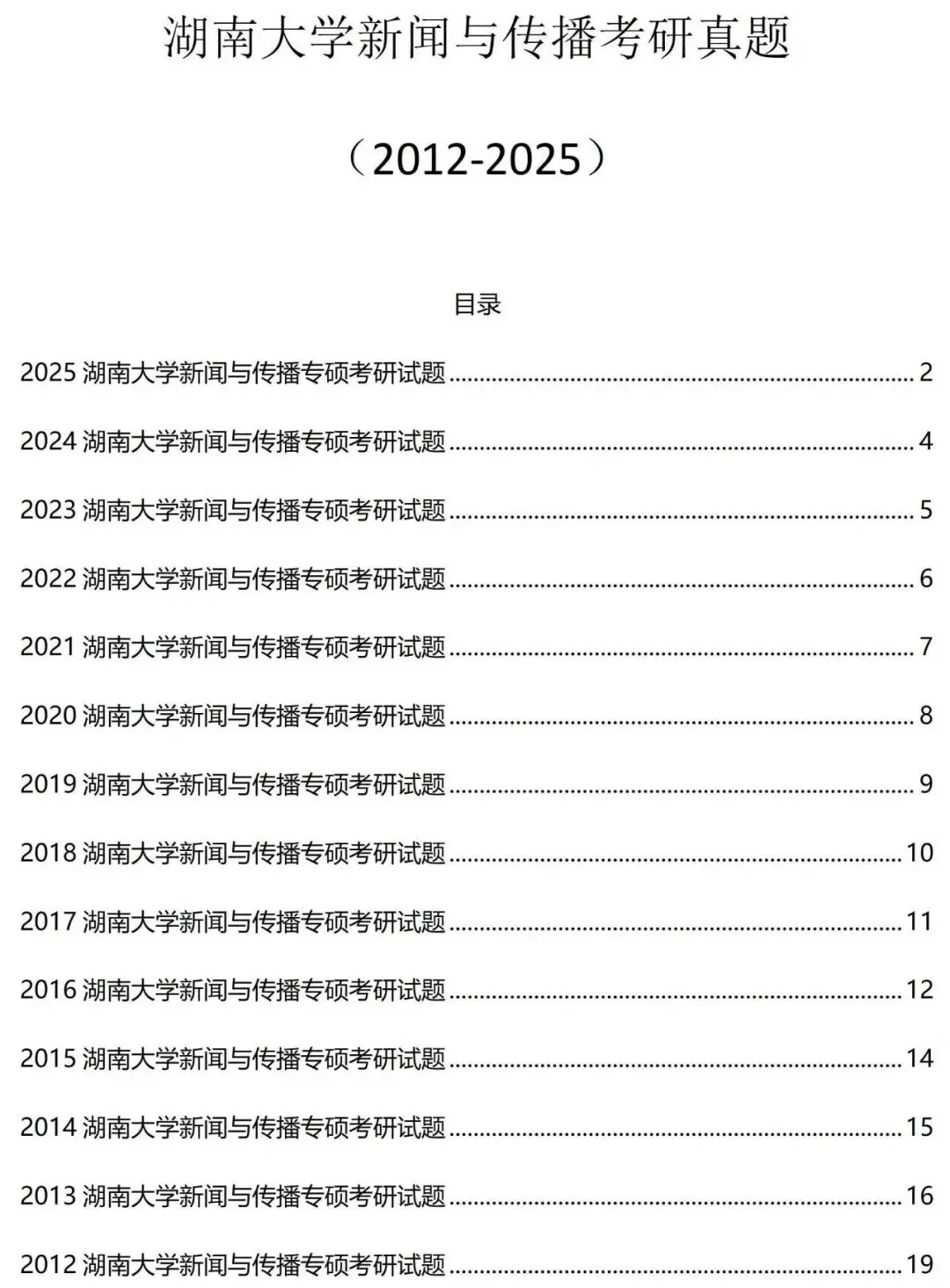 湖南大学新闻与传播2012-2025历年考研真题已整理好,可直接获取!