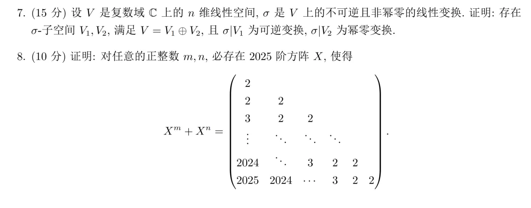 - 设 是复数域 上的 维线性空间, 是 上的不可逆且非幂零的线性变换.证明:存在-子空间 ,满足 ,且 为可逆变换, 为幂零变换.