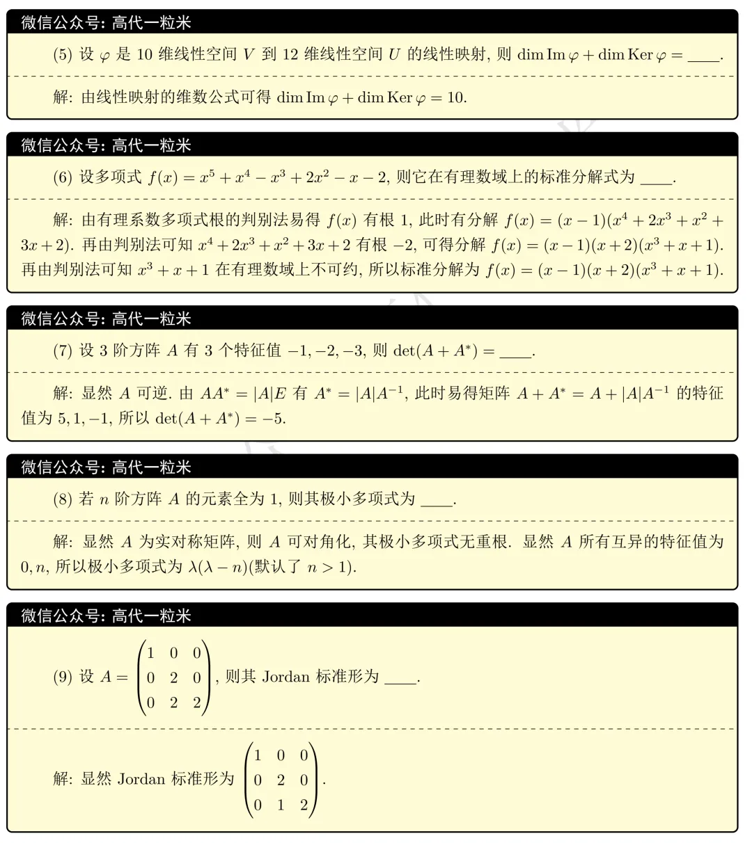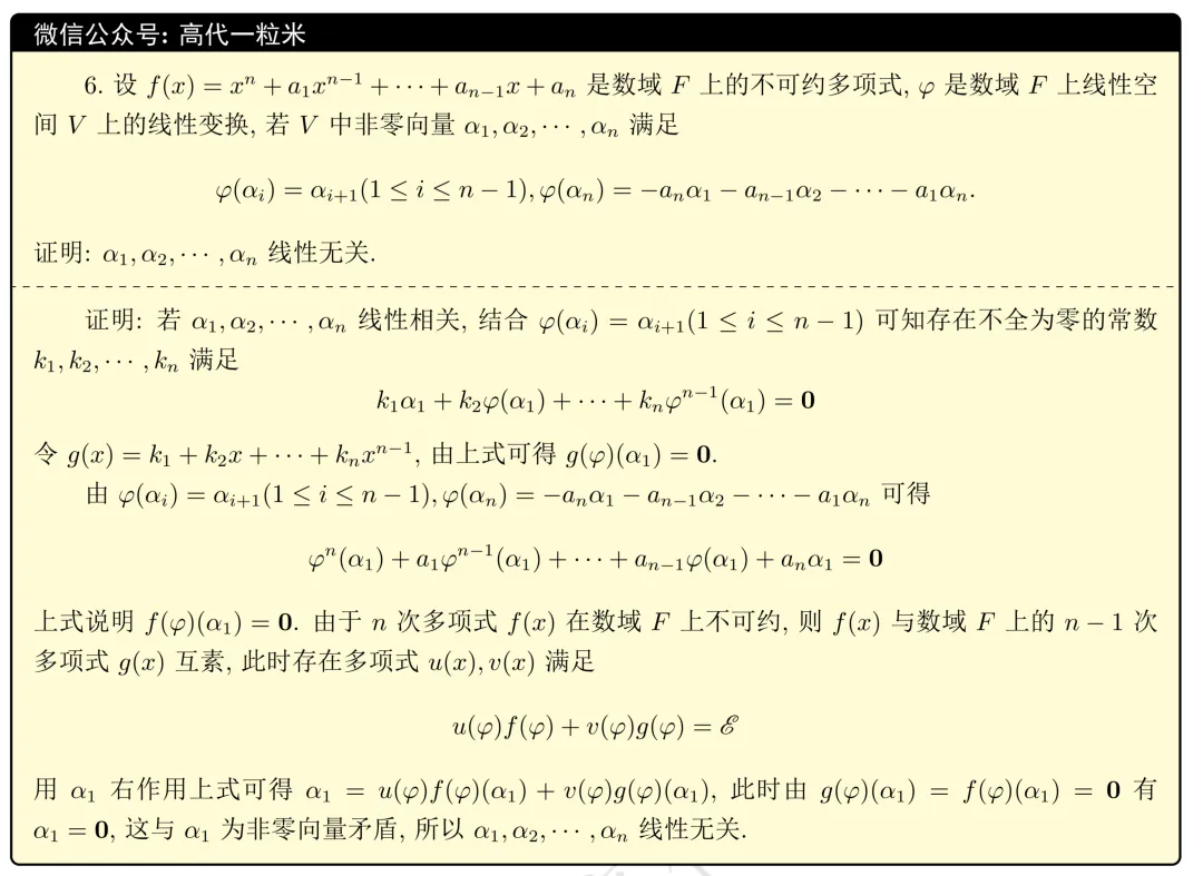 向量组线性无关的证明(3,3,3)、不可约多项式的应用(1,3,3)、循环子空间(1,3,3)