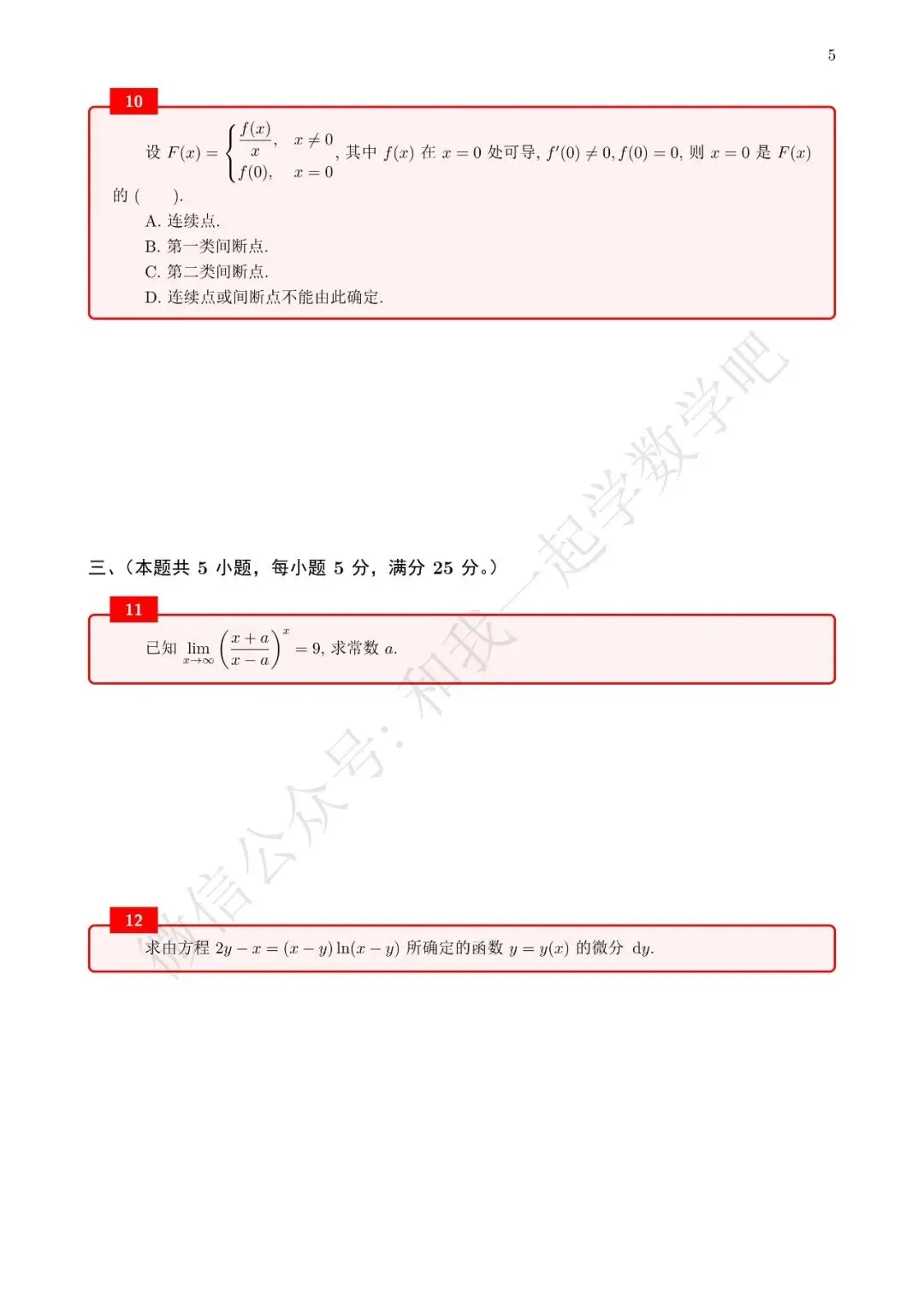 为了方便各位小伙伴们刷题,我重新排版了90年数二的真题,在每道题下面都增加了空白,方便大家写答案,记录相关知识点。以下是图片,完整版pdf文件后台回复"90考研数二"免费领取。