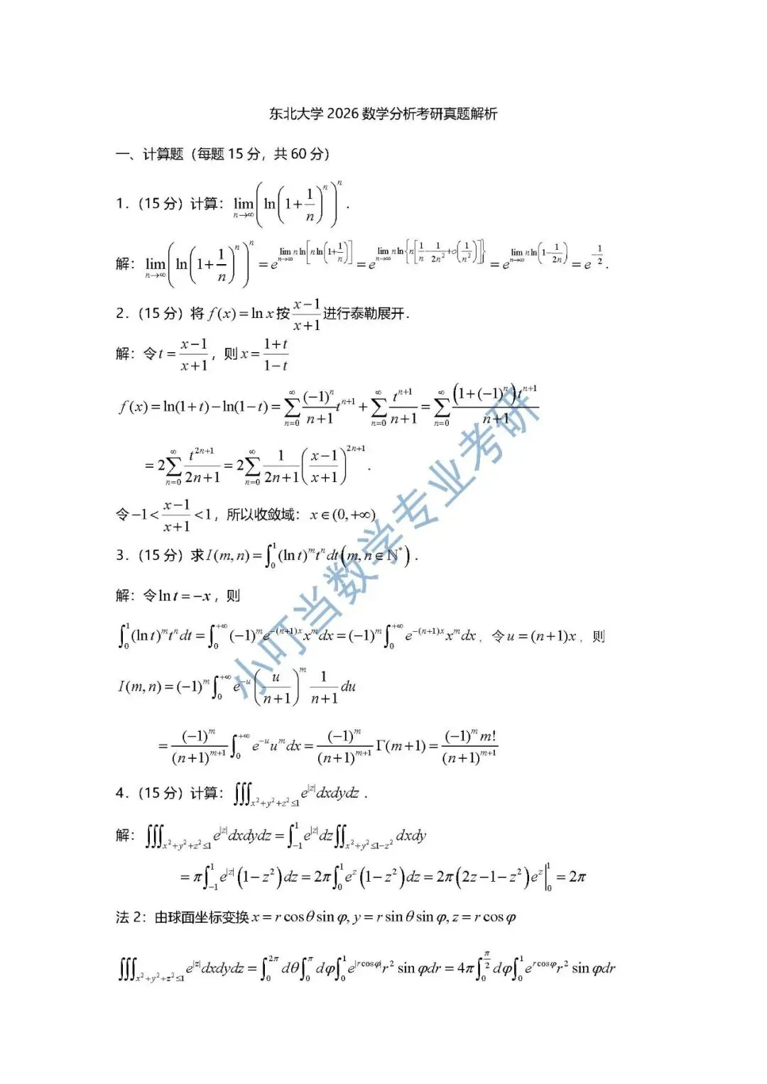 >东北大学2026数学分析考研真题解析