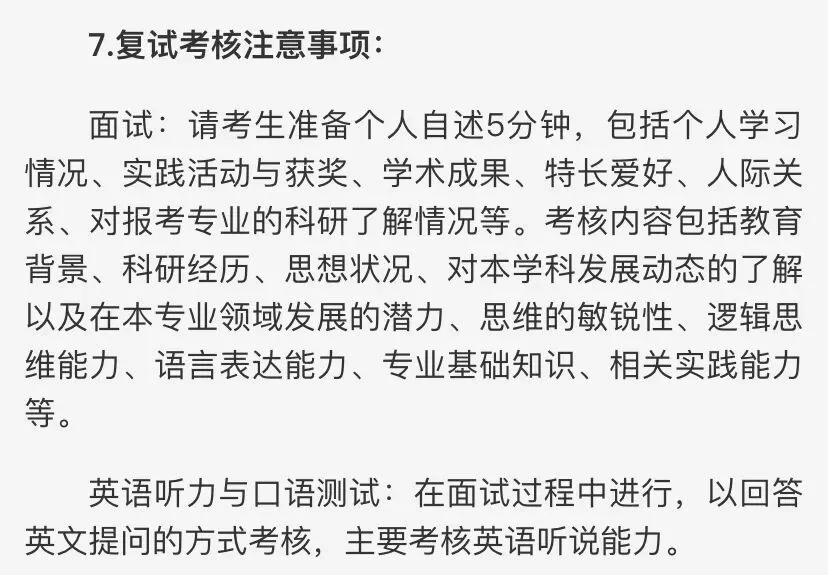 2. 自我介绍(中英文):需突出本科专业成绩、科研/竞赛经历、毕设内容、考研动机及未来研究规划,时长控制在5分钟内。