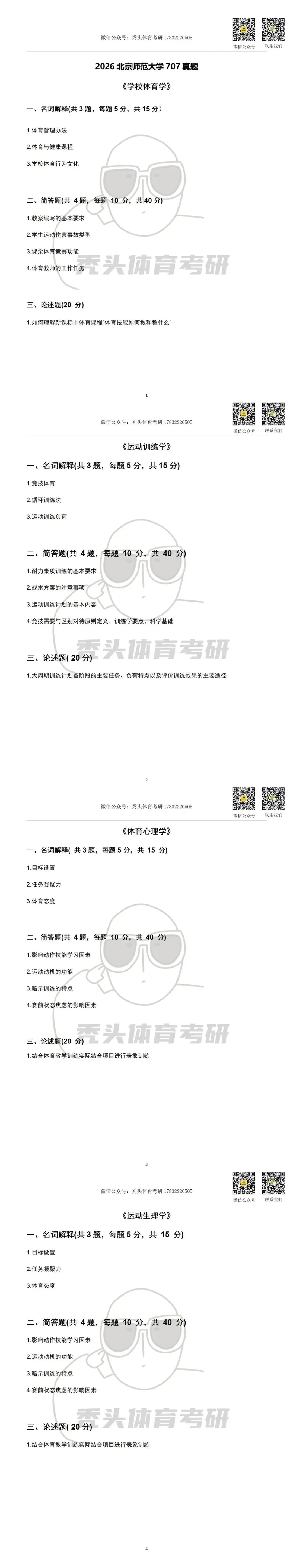 >26体育考研真题丨北京师范大学707初试真题(2026)