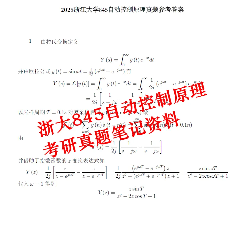 27浙大845自动控制原理考研真题答案笔记资料含26真题