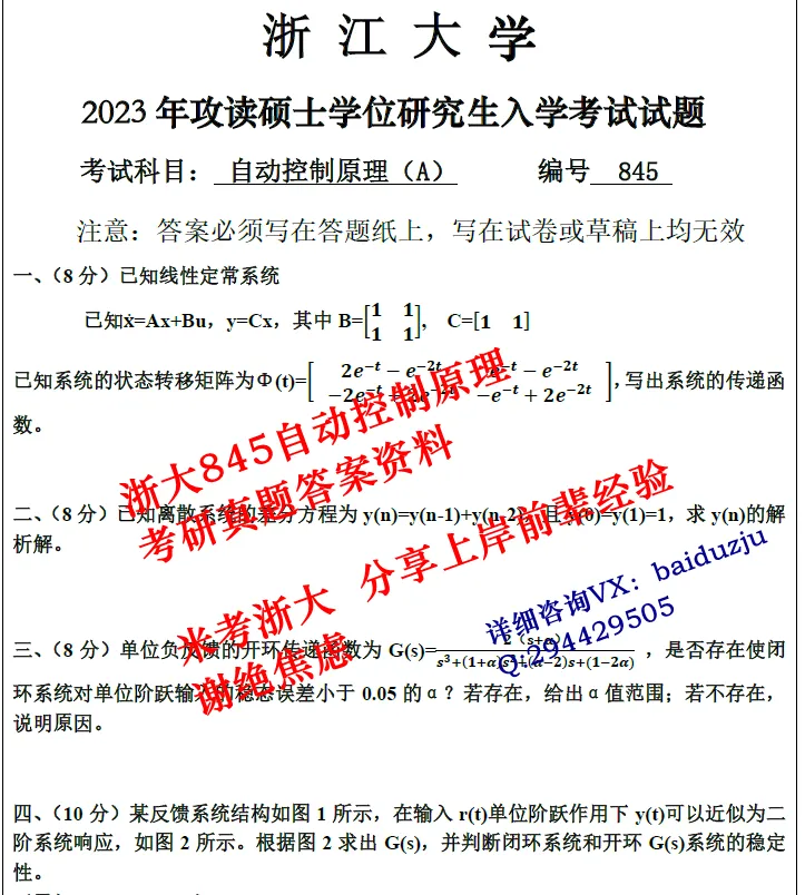1.2001-2026浙大845自动控制原理考研真题完整版