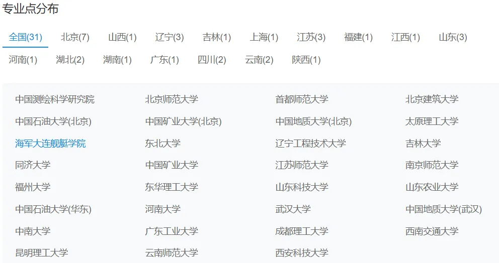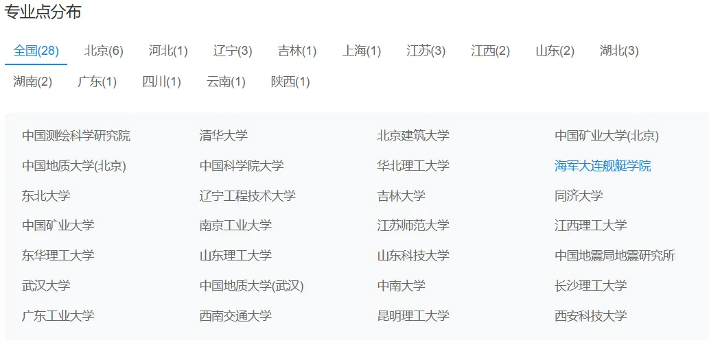 大地测量学与测量工程二级学科开设院校(来源,研招网)