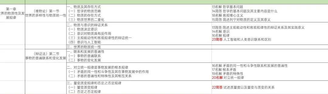 +真题分析表格