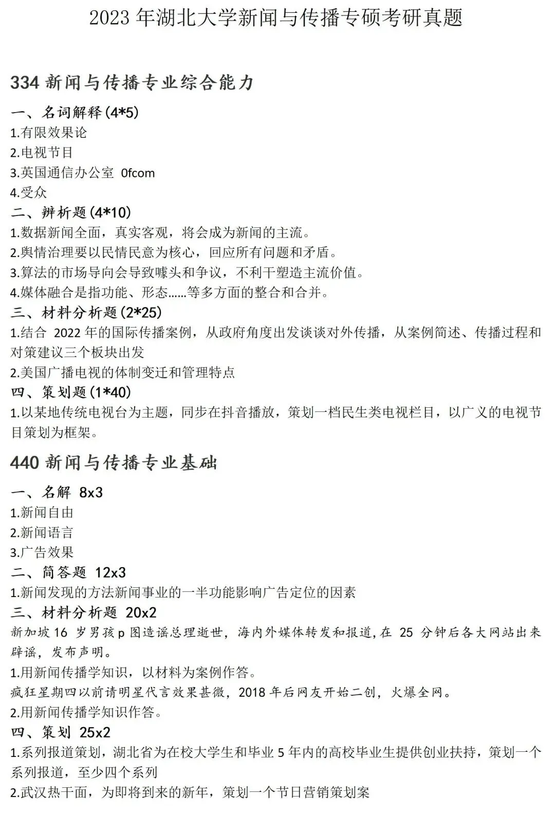 >湖北大学新闻与传播考研真题2023