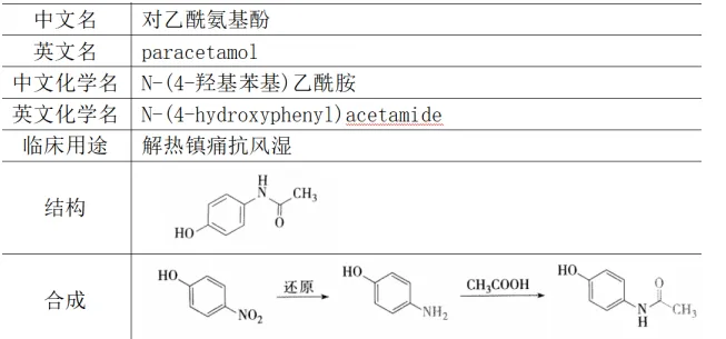 3.对乙酰氨基酚(原题,研当当强化班所发资料:药物化学结构和用途简洁版)