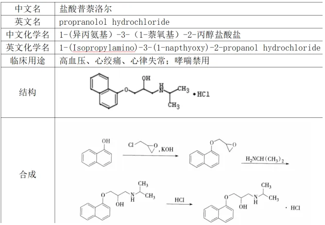 4.普萘洛尔(原题,研当当强化班所发资料:药物化学结构和用途简洁版)