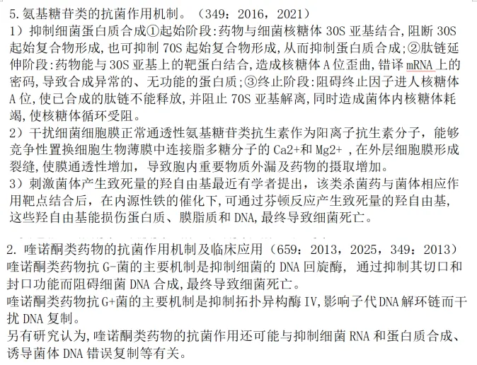 4.简述β-内酰胺类,大环内酯类,氨基糖苷类,喹诺酮类的抗菌作用机制(研当当冲刺押题卷一原题,基础班讲解,强化班强调:药理学真题,吉大药学院药理笔记精简版;研当当冲刺班所发资料:药理学考点大全)