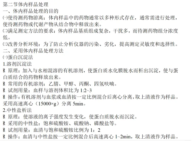 1.为什么要对体内药物进行前处理(目的)?前处理的方式有哪些?(研当当冲刺押题卷二原题,基础班讲解,强化班强调:药物分析笔记;研当当冲刺班所发资料:药物分析考点大全)