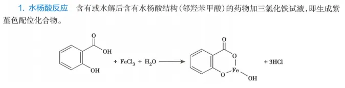 具有酚羟基取代的本类药物, 可与Fe3+离子配位显色,加入碱性溶液即变色,随即被高铁离子氧化并发生颜色变化。