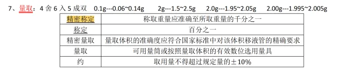 4.称定和精密称定的区别,遵循四舍六入五成双的原则下“2.0g”称取的范围(研当当基础班讲解,强化班强调:药物分析笔记;研当当冲刺班所发资料:药物分析考点大全)