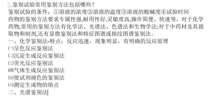 6.简述药品常用鉴别方法,和鉴别检查时的方法验证指标(研当当冲刺押题卷一原题,基础班讲解,强化班强调:药物分析笔记;研当当冲刺班所发资料:药物分析考点大全)