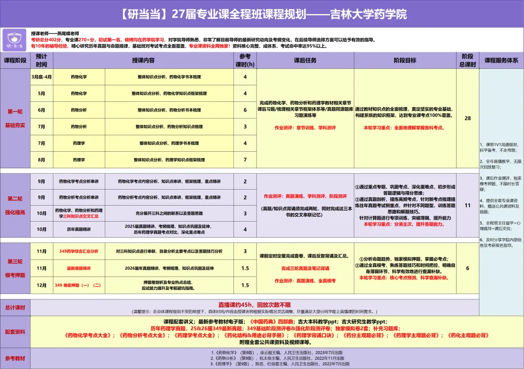 在强化班系统讲历年真题的时候,对于出现过的真题进行全覆盖梳理讲解,对比2026届的专业课真题会发现只要过往考到过的药理学真题基本都会在强化班的真题课堂上出现,除此之外,基础班和强化班的冲刺笔记也有多数题目押中,349药学综合命中率均在96.7%以上,其中药物化学命中率100%,药理学命中率95%,药物分析命中率95%!