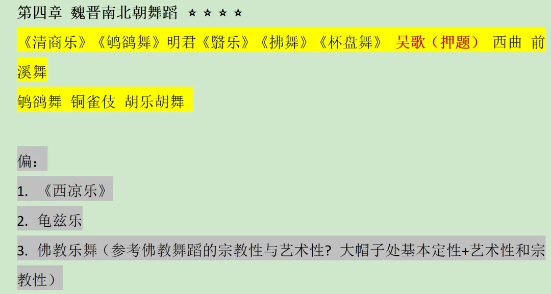 【考点出处】中国舞蹈史马工程 第四章 魏晋南北朝舞蹈 吴歌西曲部分考点