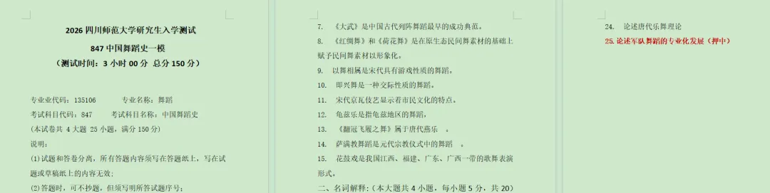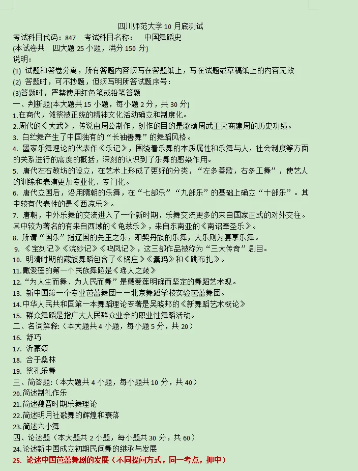 四川师范大学2026年10月测试卷;四川师范大学2026研究生考试预测材料(押题材料)中国舞蹈史第十一章考试内容